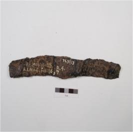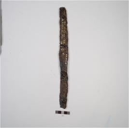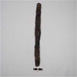 | Description / विवरण | Fragment of an iron knife, broken in two parts with rusted surface, broken at both the ends. |