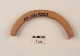 | Description / विवरण | Fragment of handmade terracotta bangle well baked, fine fabric, circular section and surface treated with red slip. |