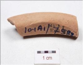 | Description / विवरण | A fragment of handmade terracotta bangle surface treated with red slip, well baked and rectangular in section. |