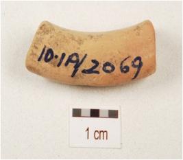 | Description / विवरण | A fragment of a handmade terracotta bangle, made with fine clay, plano convex in section, well baked, |