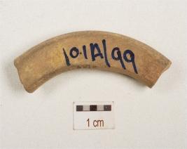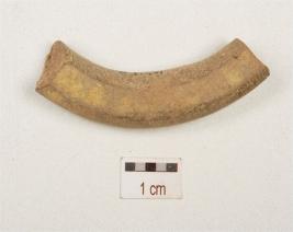 | Description / विवरण | Fragment of a handmade terracotta bangle, fine fabric and circular cross- section. |