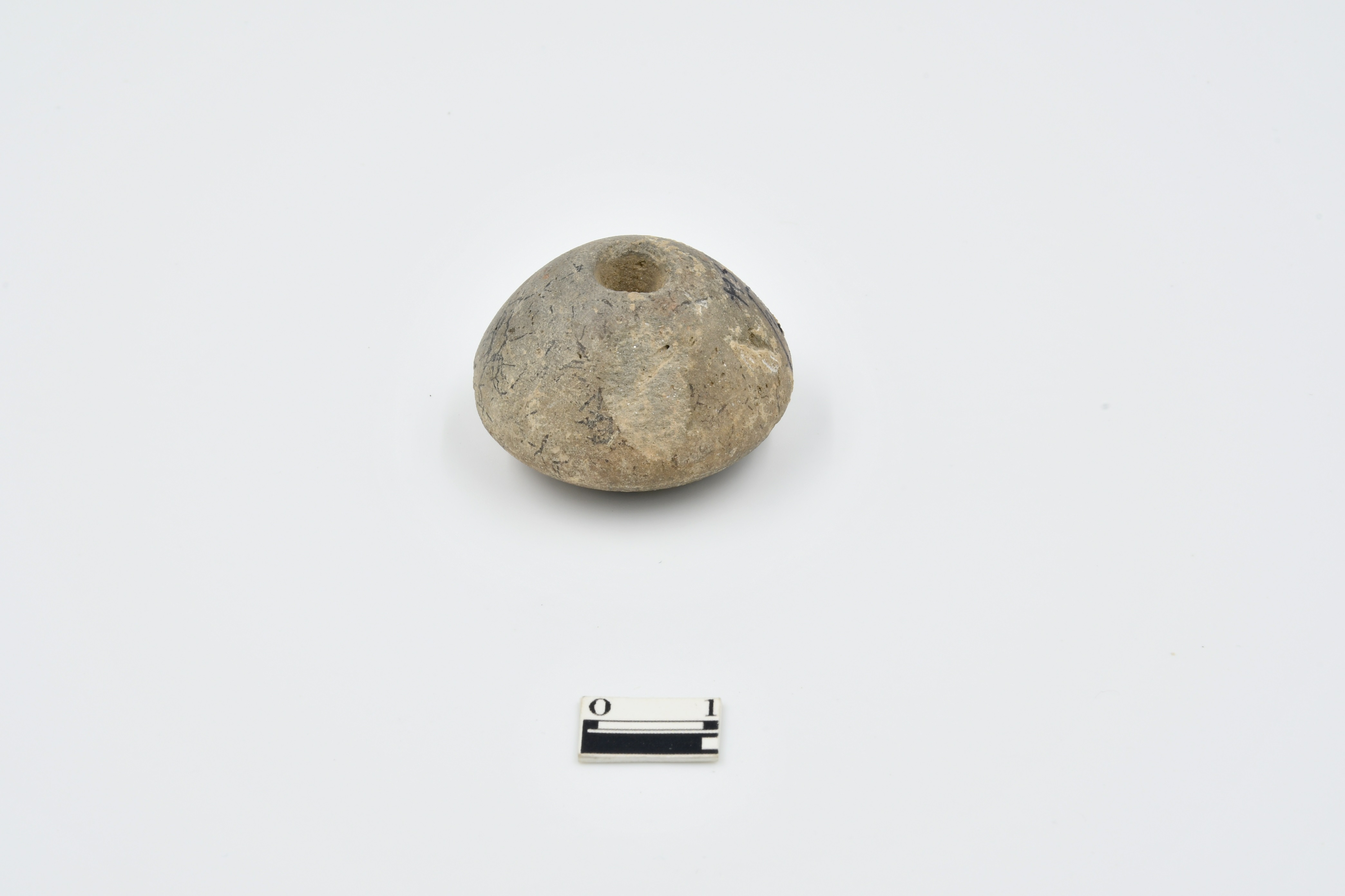 Areca nut shaped terracotta bead. Semi oxidised with black surface