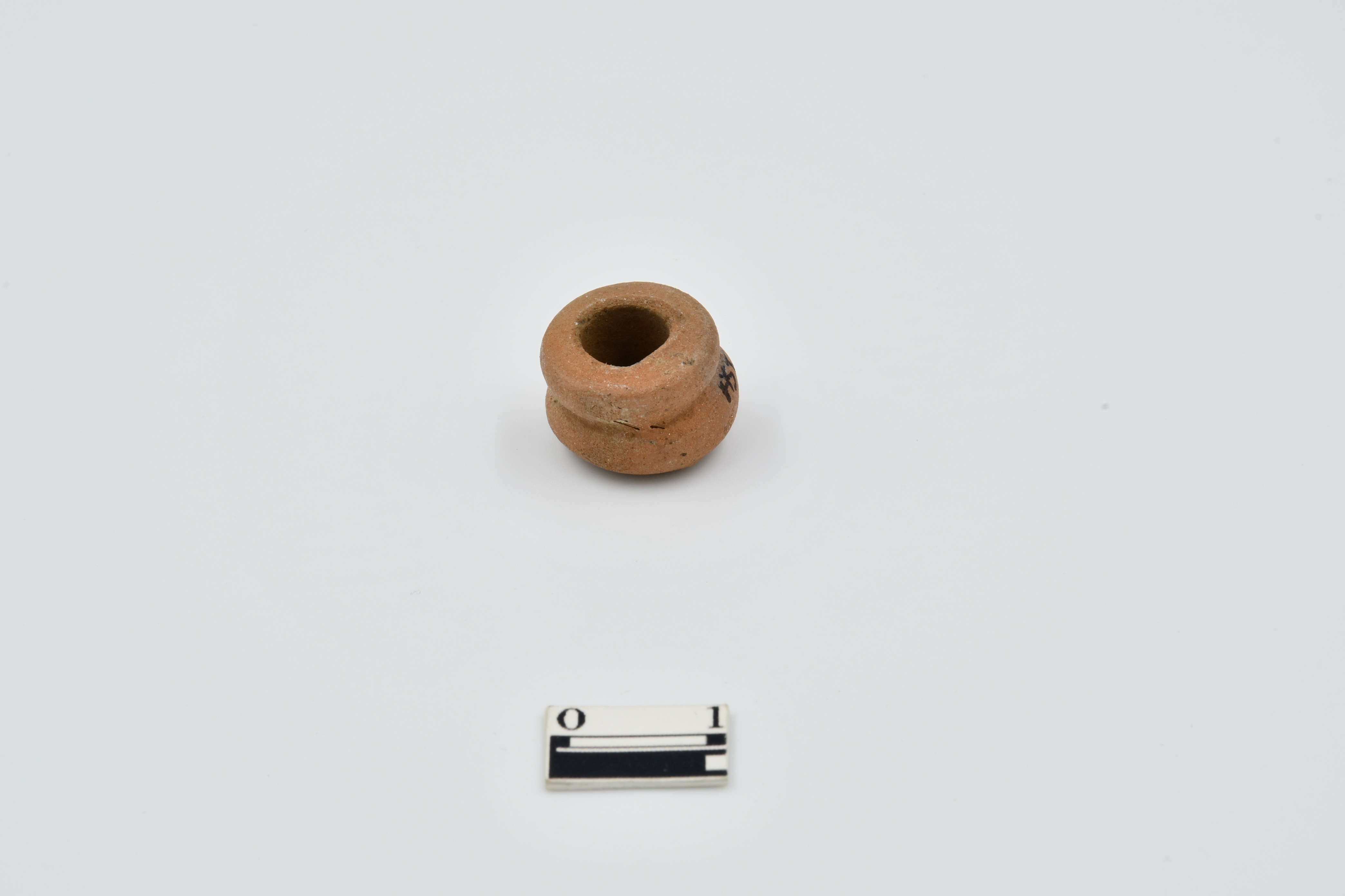 Ghat shape terracotta bead. Ghat shape small terracotta bead having groove on centre.