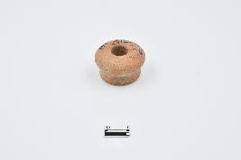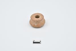 Ghat shape terracotta bead. Smooth surface, groove on neck