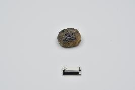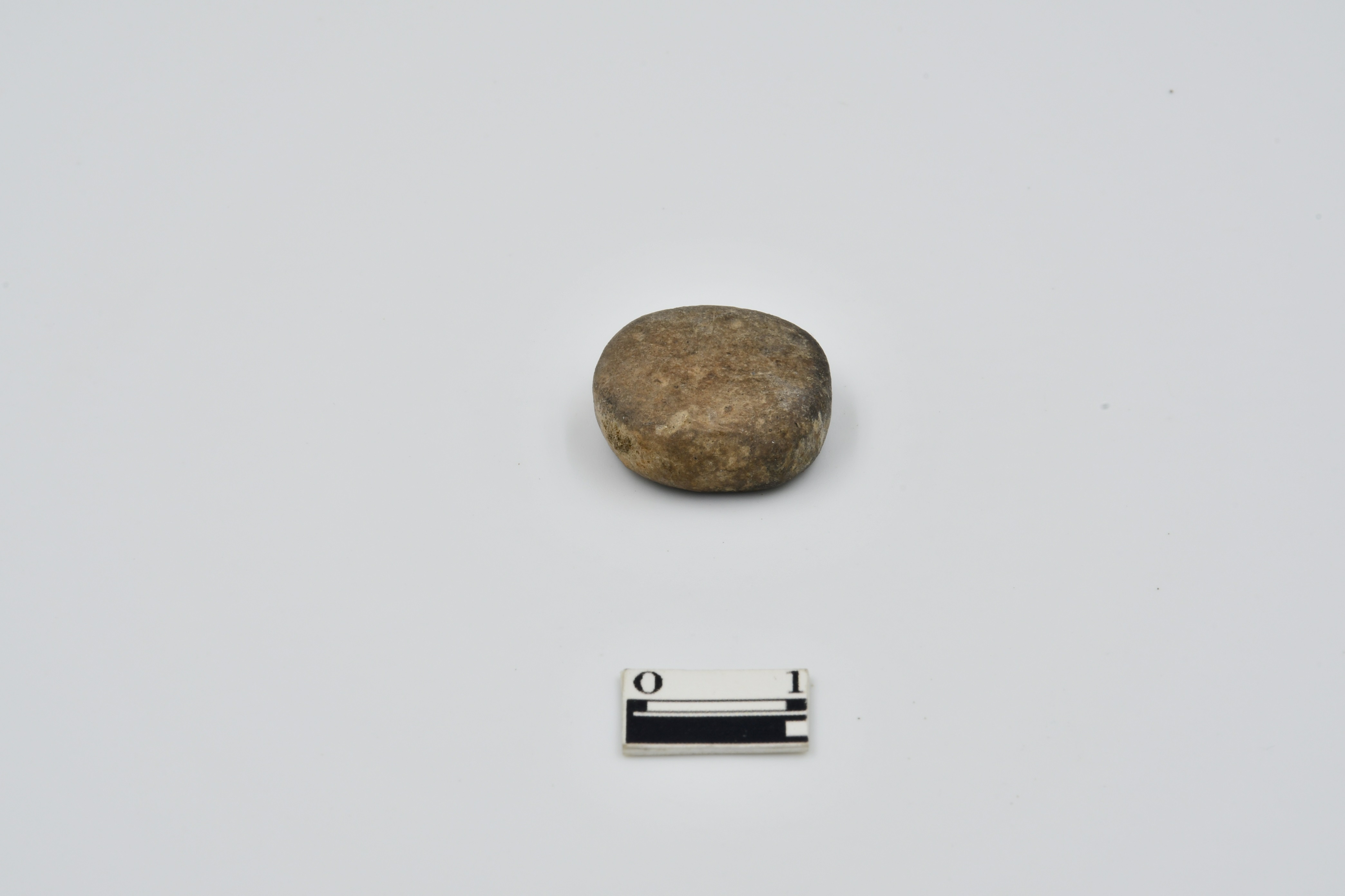 Terracotta disc made of red ware pottery. rough surface and partially chipped from edges, ill fired