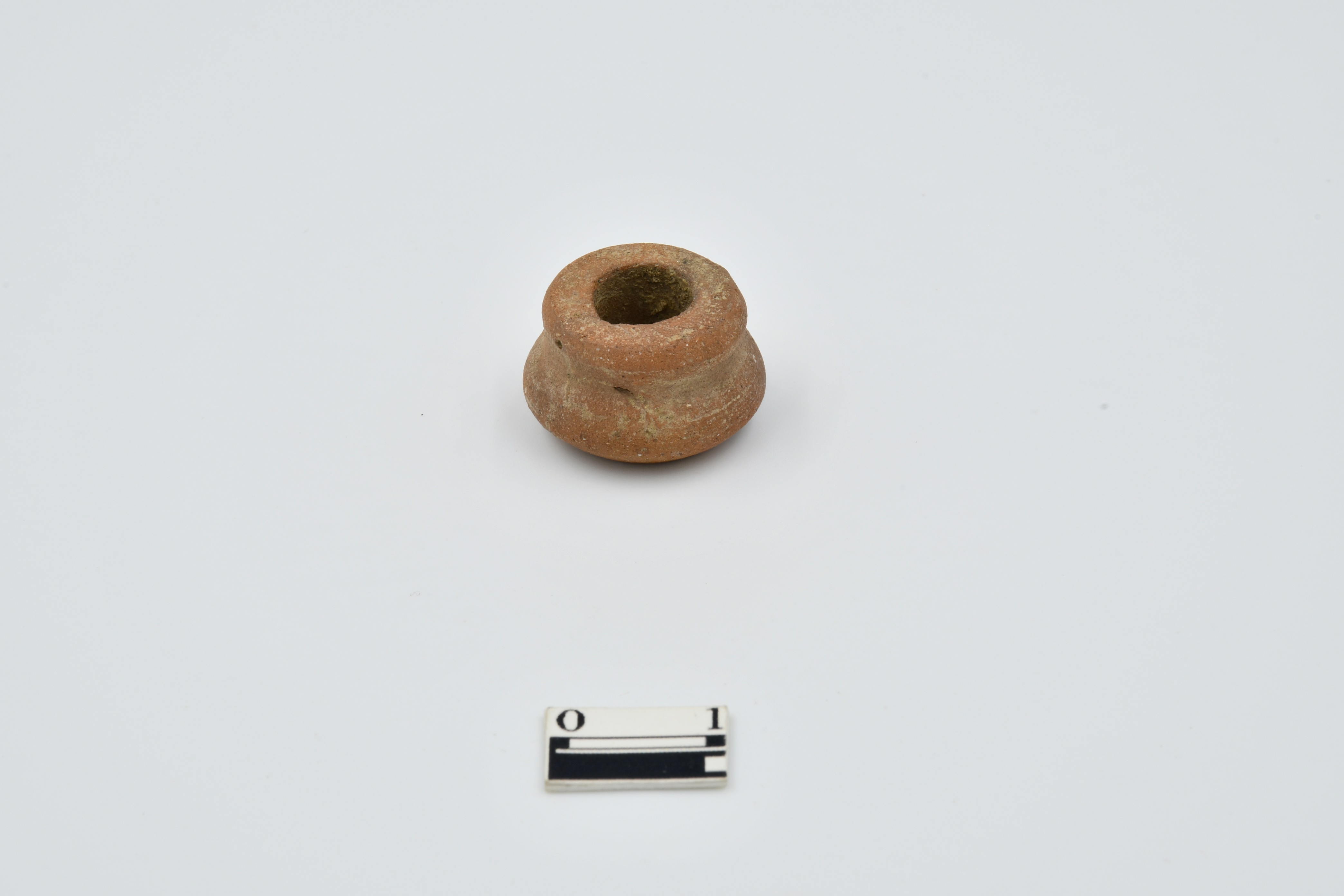 Ghat Shape Bead. Chipped from top part, having groove on neck