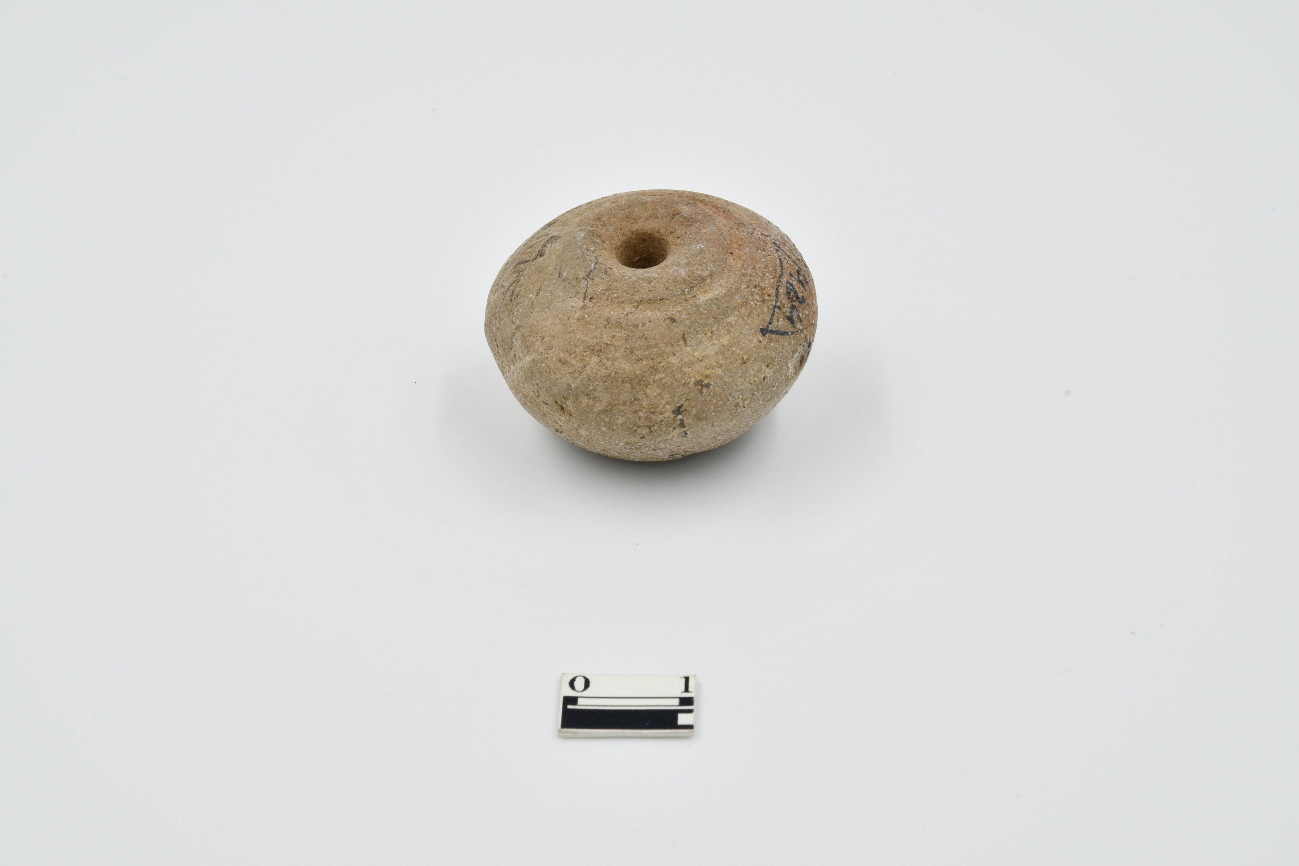 Pear shaped terracotta bead, Rough surface, incised groove on bottom