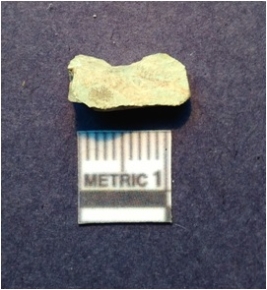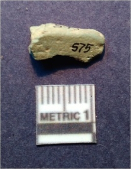 | Description / विवरण | It is a faience bead. It is greenish in color. It is rectangular in shape. It is broken with flat edges. |