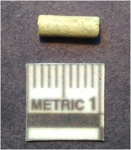 | Description / विवरण | Faience tubular shaped bead, glaze coating and bluish greenish in colour. |