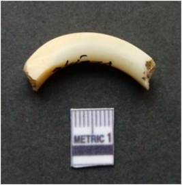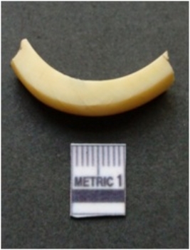 | Description / विवरण | The shell bangle piece shows clear curvature on account of being a broken part of a complete bangle. The surface is pale yellow in color and the inner side has natural polish, it is trapezoidal in cross section. |