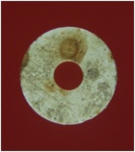 | Description / विवरण | It s a bead made of steatite with a hole through it. Shape is circular and surface is smooth. Appearance is dusty white. |