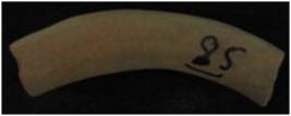 | Description / विवरण | It s a fragment of bangle made of terracotta. It is not well fired. Colour is ochred. It is broken from both sides and in round shape. Rubbing on the surface. |