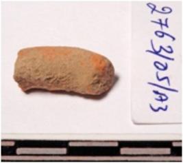 | Description / विवरण | A fragment of a terracotta bangle circular in section of smooth surface. |