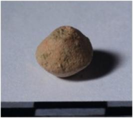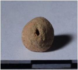 | Description / विवरण | A terracotta biconical shaped bead, circular in section and smooth surface. |