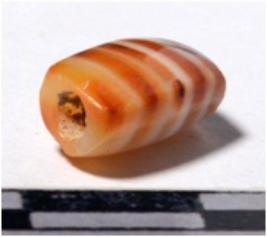 | Description / विवरण | A standard banded agate flat barrel shaped bead circular in section of smooth surface. |