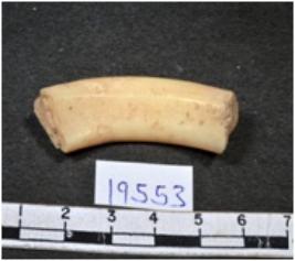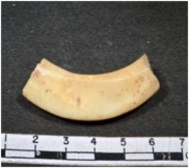 | Description / विवरण | A fragment of shell bangle showing circular in shape and concavo-convex section, having fine surface. |