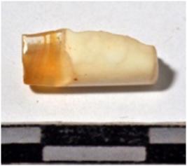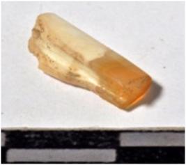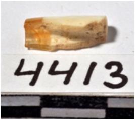 | Description / विवरण | A fragment of a stone flat barrel shaped bead, of smooth surface. |