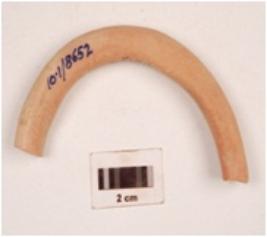 | Description / विवरण | Fragment of a terracotta bangle, circular cross-section, surface treated with red slip. |