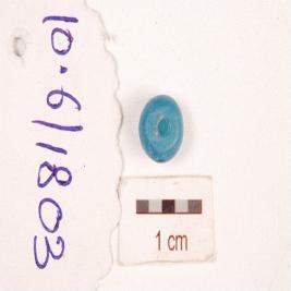 | Description / विवरण | Spheroid shape glass bead, perforation, smooth surface, circular cross section and blue colour. |