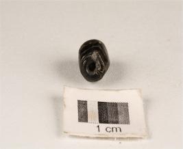 | Description / विवरण | Tiny barrel shape agate bead, slightly chipped off, perforation at middle. |