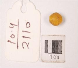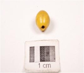 | Description / विवरण | Short glass bead, barrel shaped, section in circular, colour yellow, smooth surface. |