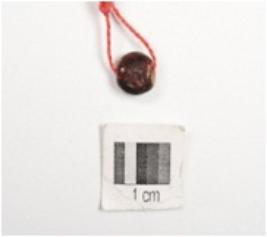 | Description / विवरण | A barrel shaped bead, made in glass, black in colour, smooth and well polished. |