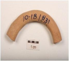 | Description / विवरण | A fragment of handmade terracotta bangle, made of fine clay, surface treated with red slip, square in cross section and well baked. |