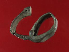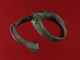 | Description / विवरण | It s a bangle , deformed and broken in the middle. A loops is present at one end and other end is having a hole through it. Surface is rusted. Received from Mohamad Pur Rohi, Fatehabad. |