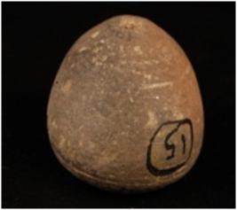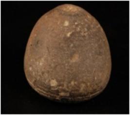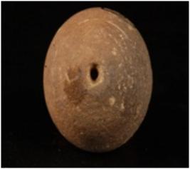 Description / विवरण | Terracotta pear shaped bead with Incised line on surface. |