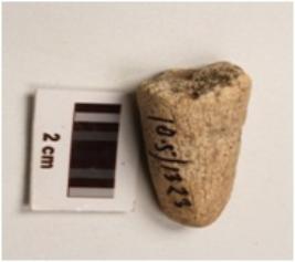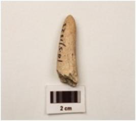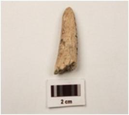 | Description / विवरण | A fragment of bone horn, slightly broken from one end. |
