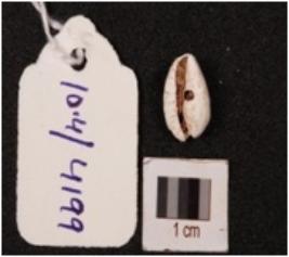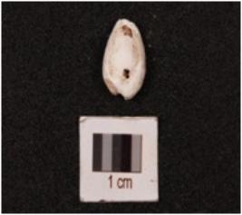| Description / विवरण | A cowrie shell with bulbous top, natural groove at the base, powdery surface and white in colour. |
