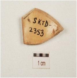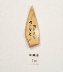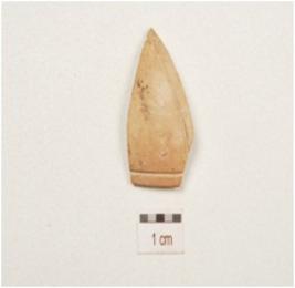 | Description / विवरण | Fragment of shell object, with polished surface, incised marginal lines, glossy interior, broken from two sides, section and light brown in colour. |
