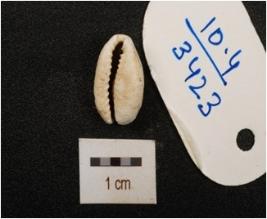 | Description / विवरण | A cowrie with groove in the middle and powdery surface. |