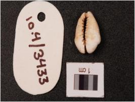 | Description / विवरण | Cowrie shell with a natural groove line and a wide perforation on the surface powdery surface and white in colour. |