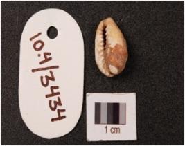 | Description / विवरण | A cowrie shell with natural groove line powdery surface and white in colour. |
