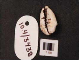 | Description / विवरण | A cowrie with natural groove line having powdery surface and white in colour. |