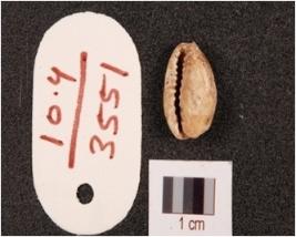| Description / विवरण | Cowrie shell with natural groove, powdery surface, hole in lower surface and white in colour. |