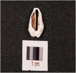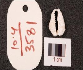 | Description / विवरण | Cowrie shell, natural marine object with powdery surface and natural groove. |