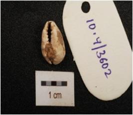 | Description / विवरण | Cowrie shell with powdery and earthy incrustation on surface, Natural groove line at bottom and off white in colour. |