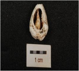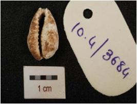 | Description / विवरण | Cowrie, partly broken powdery surface with a natural groove at base and white in colour. |