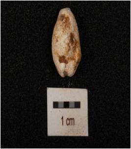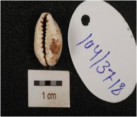 | Description / विवरण | A cowrie natural marine shell object with powdery surface, natural groove line at bottom portion and white in colour. |
