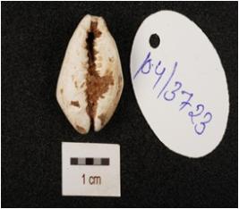 | Description / विवरण | A cowrie natural marine shell object with powdery surface, natural groove line at bottom and white in colour. |
