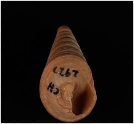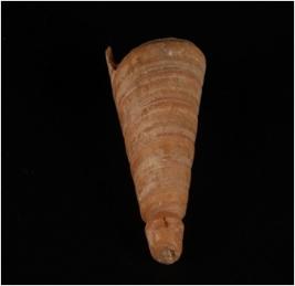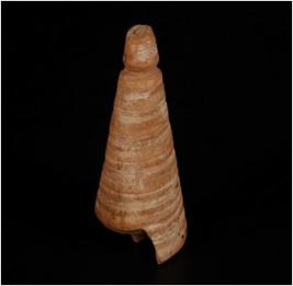 | Description / विवरण | A modified marine shell with a groove on the lower part and natural lines on the surface. |