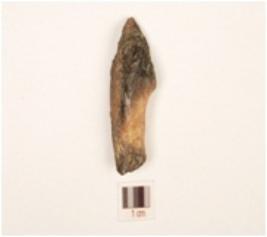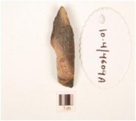 | Description / विवरण | A fragment of bone object, partly broken, uneven in shape, one end is pointed and other is flat and flat surface. |