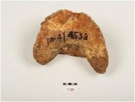 | Description / विवरण | Portion of falange from an equide family, third falange, partly chipped off edge and weathered surface. |