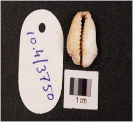 | Description / विवरण | A shell cowrie with powdery and partly broken surface, natural groove and off white in colour. |