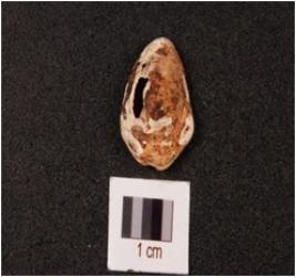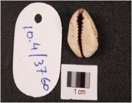 | Description / विवरण | A cowrie shell with partly damaged surface, natural groove at the base and off white in colour. |