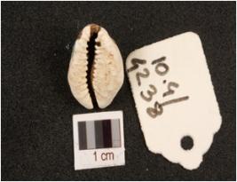 | Description / विवरण | A small shell cowrie, white in colour and surface is rough. |