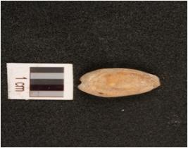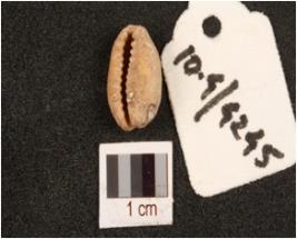 | Description / विवरण | A small shell cowrie, white in colour and rough surface. |