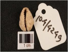 | Description / विवरण | A small shell cowrie, white in colour and rough surface. |